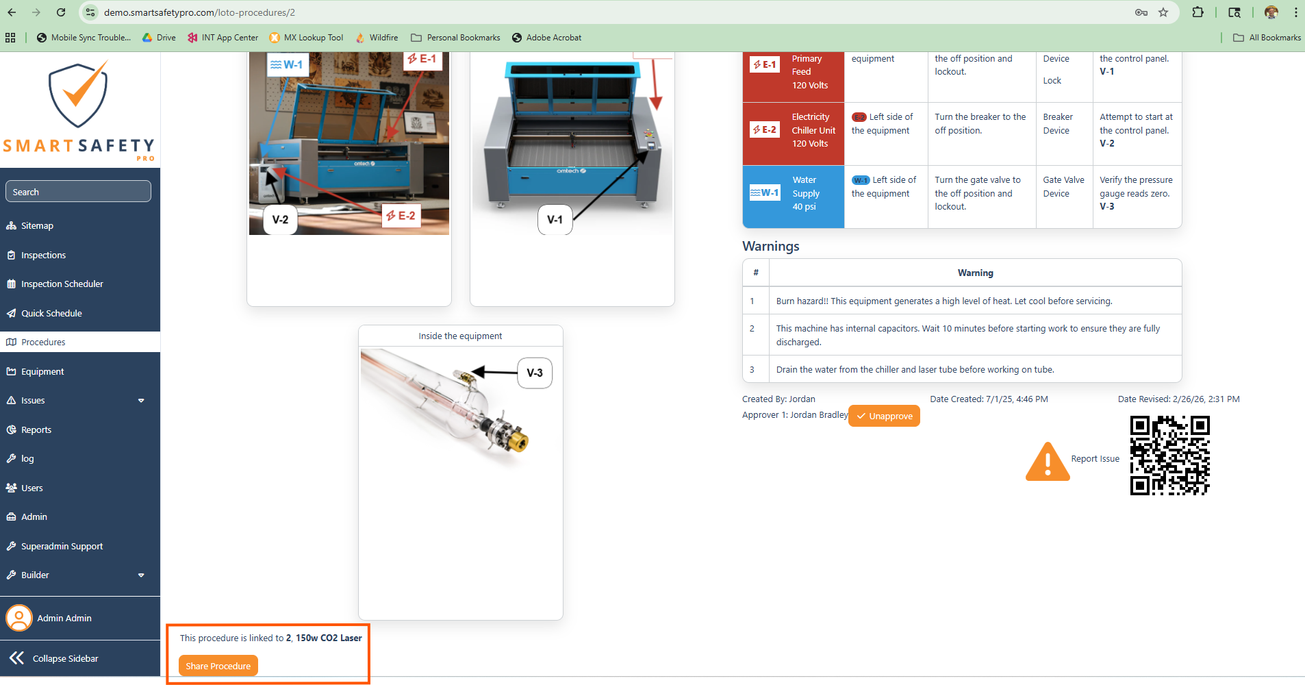 Once a LOTO procedure is approved, it is available to share with other pieces of equipment.